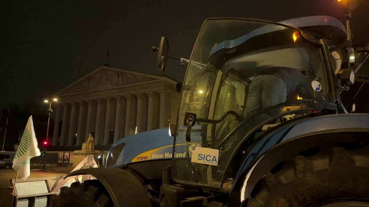 Les tracteurs des syndicats agricoles FNSEA et Jeunes agriculteurs, entrés dans Paris mardi matin avant de prendre position autour de l'Assemblée nationale, commencent à quitter la capitale mercredi avant le lever du jour. IMAGES