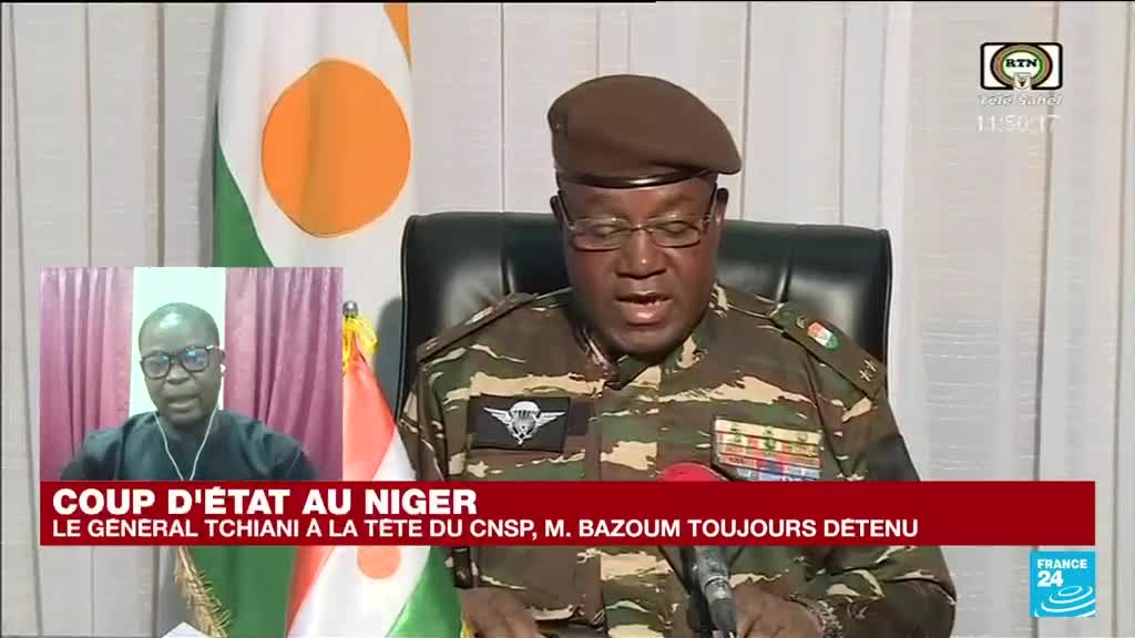 Coup d'Etat au Niger : le général Tchiani à la tête du CNSP, M. Bazoum toujours détenu information fournie par France 24 28/07/2023 à 15:30