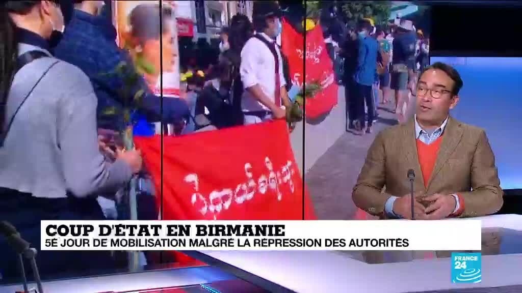 Les Birmans sont descendus par dizaines de milliers dans la rue mercredi pour le cinquième jour consécutif, au lendemain d'un raid nocturne de l'armée contre le siège du parti d'Aung San Suu Kyi, une action qui montre la détermination des généraux putschistes face aux appels à rétablir la démocratie. Les précisions de Cyril Payen, chroniqueur international France 24.