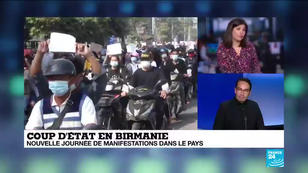 Les généraux putschistes ont fait planer lundi en Birmanie pour la première fois la menace d'"actions" contre les contestataires alors que des foules massives ont de nouveau manifesté contre le coup d'État qui a renversé Aung San Suu Kyi. Les explications de Cyril Payen, Grand reporter à France 24.