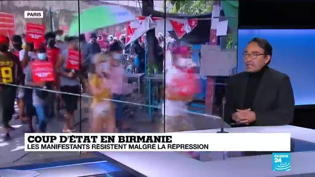 Des manifestants opposés au coup d'État militaire en Birmanie ont défilé lundi à Mandalay (centre), la deuxième ville du pays, au lendemain d'une nouvelle journée de répression meurtrière durant laquelle huit contestataires ont été tués. Le décryptage de Cyril Payen, grand reporter à France 24.