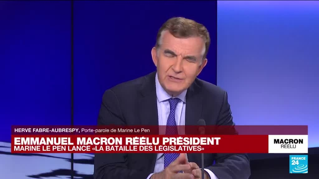 Marine Le Pen, battue dimanche au second tour de la présidentielle française par Emmanuel Macron, a déclaré que son score représentait une "éclatante victoire" pour les idées qu'elle défend et a lancé un appel au rassemblement des opposants au président réélu en vue des législatives. L'intervention d'Hervé Fabre-Aubrespy, porte-parole du Rassemblement National.