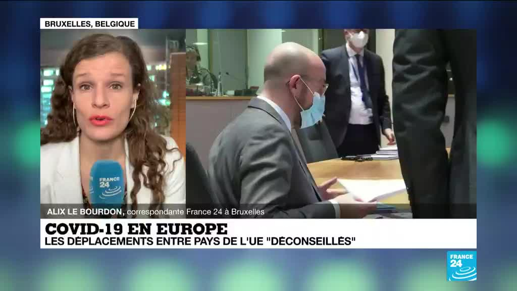 La Commission européenne a proposé jeudi aux chefs d'Etat et de gouvernement de l'Union européenne d'identifier comme "rouge foncé" les plus importants foyers épidémiques, depuis lesquels tous les voyages non-essentiels devraient être déconseillés, sur fond d'inquiétude grandissante face à la crise du coronavirus. Les précisions d'Alix le Bourdon, correspondante France 24 à Bruxelles.