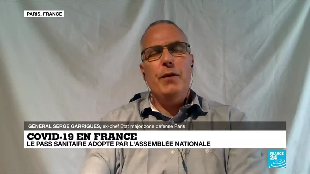 Le pass sanitaire, qui va conditionner l'accès à de grands rassemblements ou à certains lieux à un résultat négatif de dépistage du virus, un justificatif de vaccination ou une attestation de rétablissement après une contamination, a finalement été adopté dans la douleur par l'Assemblée nationale dans la nuit de mardi à mercredi. Les explications du Général Serge Garrigues, ex-chef Etat major zone défense Paris.
