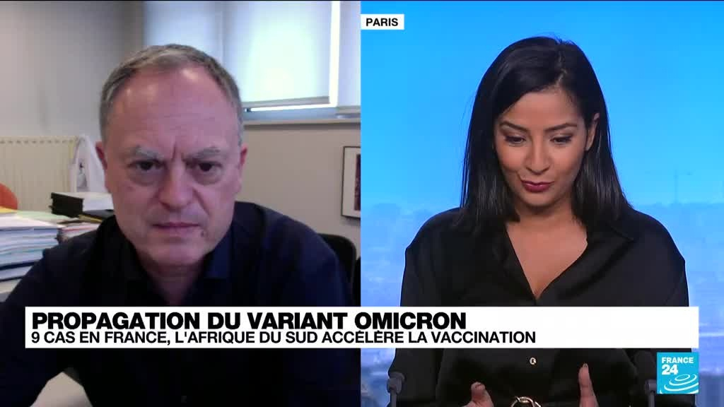Depuis la détection, jeudi 25 novembre, d'Omicron en Afrique du Sud, virologues et chercheurs en biologie du monde entier tentent de comprendre ce variant jugé "préoccupant" par l'Organisation mondiale de la santé (OMS). Le variant Omicron inquiète les spécialistes en raison de la présence d'un grand nombre de mutations qui laissent craindre une importante transmissibilité ainsi qu'une moindre efficacité des vaccins contre le Covid-19 actuels. Le virologue au CHU de Reims Laurent Andreoletti était l'invité de France 24.