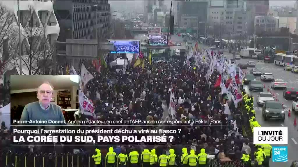 Le service chargé de l'enquête sur la récente et brève instauration de la loi martiale en Corée du Sud a annoncé qu'il allait demander un délai supplémentaire pour arrêter le président déchu Yoon Suk Yeol, après avoir été empêché de le faire par sa garde rapprochée. Décryptage avec Pierre-Antoine Donnet, auteur de "Chine, l'empire des illusions", ancien rédacteur-en-chef de l’Agence France-Presse (AFP), invité de France 24.