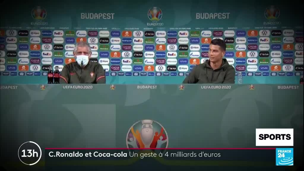 Cristiano Ronaldo écartent des bouteilles de Coca-Cola, la marque perd 4 milliards de dollars information fournie par France 24 17/06/2021 à 21:24
