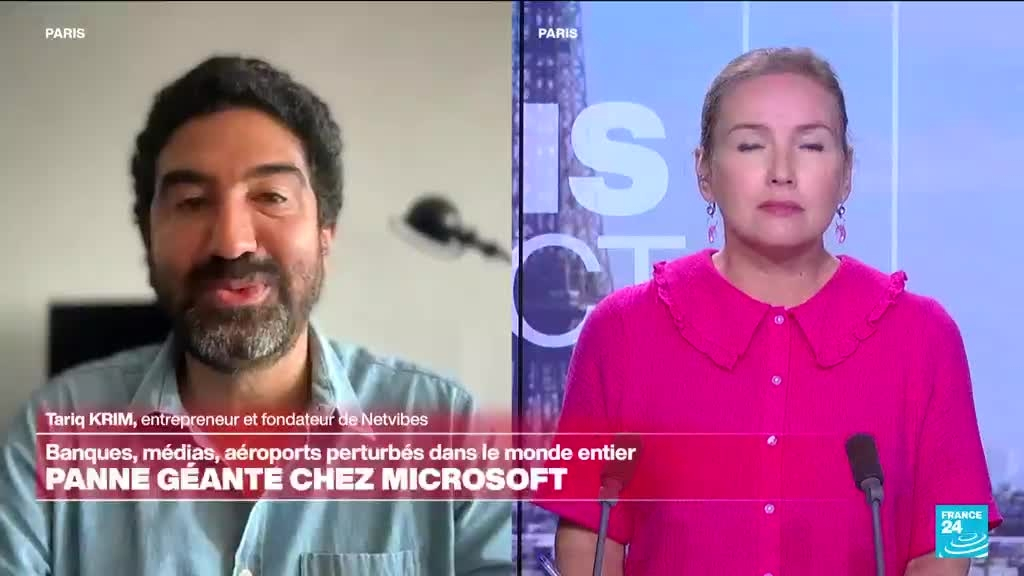 Plusieurs opérateurs aériens et ferroviaires, des banques et des médias à travers le monde ont annoncé, vendredi 19 juillet, être affectés par une panne mondiale de Microsoft. Elle serait liée à une mise à jour défectueuse de l’antivirus Crowdstrike, un logiciel intégré au système Microsoft. Les explications de Tariq Krim, entrepreneur et fondateur de Netvibes. Il était l'invité de France24.