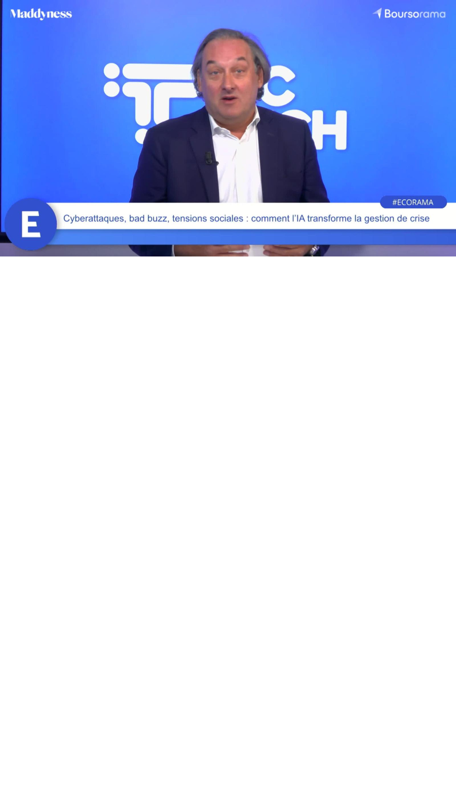 Face à des entreprises confrontées à une multiplication d’incidents et à une incertitude devenue permanente, les outils d’analyse et d’anticipation basés sur l’intelligence artificielle s’imposent peu à peu. Mascaret Partners affirme franchir un cap avec une plateforme entraînée sur 20 000 crises passées pour identifier facteurs clés, décisions critiques et conséquences opérationnelles. Jusqu’où l’IA peut-elle transformer le métier de communicant, réduire le coût des crises et accompagner dirigeants et conseils d’administration ? Entretien avec Benjamin Grange, président de Mascaret Partners. Ecorama Tic Tech du 21 novembre 2025, présenté par David Jacquot et Julien Khaski, rédacteur en chef de Maddyness, sur Boursorama.com