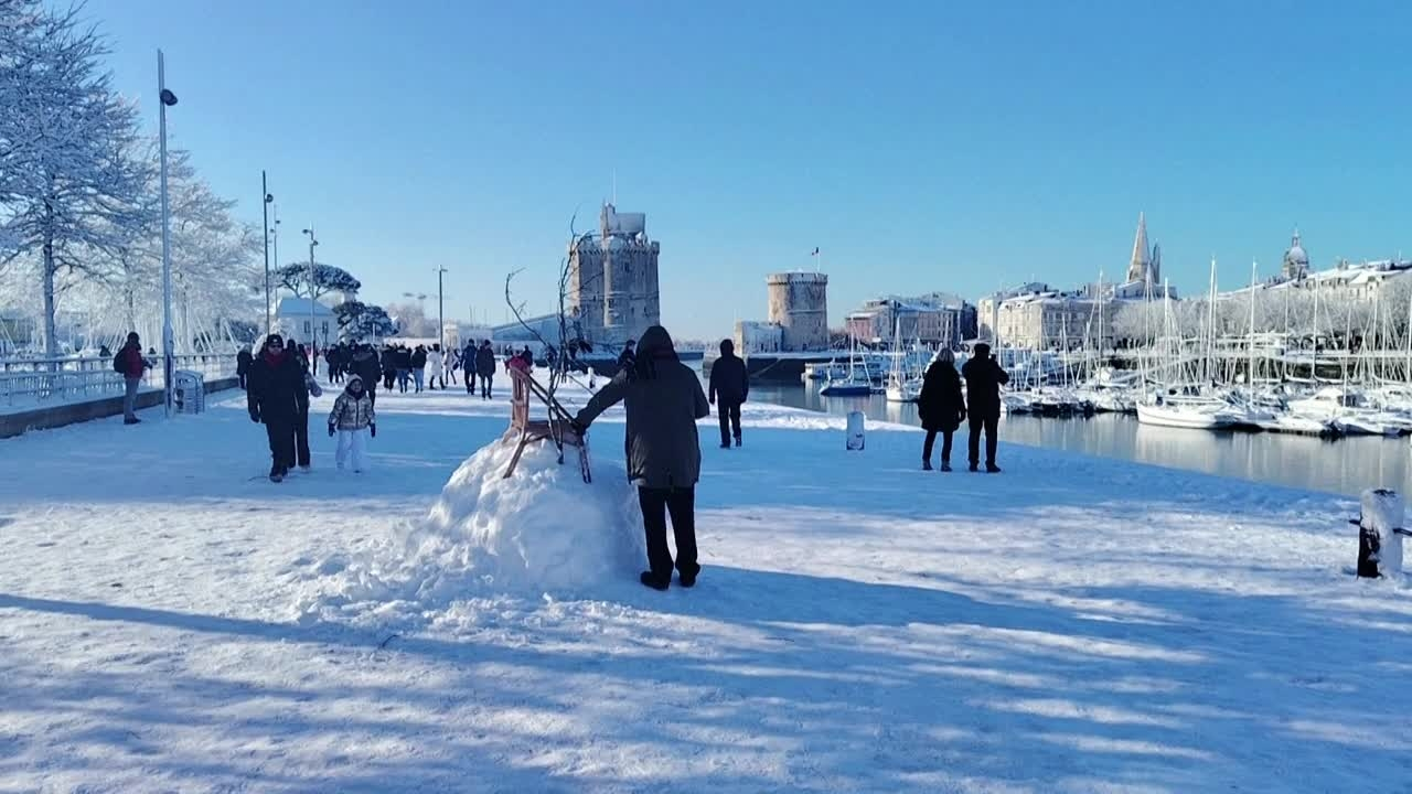 Le vieux port de La Rochelle et ses bateaux sont recouverts de blanc. Jusqu'à 30 centimètres de neige sont tombés au cours de la nuit sur la Charente-Maritime. IMAGES