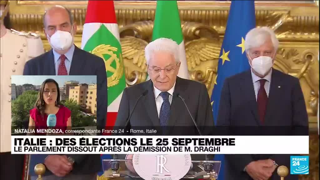 Démission de Mario Draghi : Les Italiens appelés à se rendre aux urnes le 25 septembre information fournie par France 24 22/07/2022 à 12:07