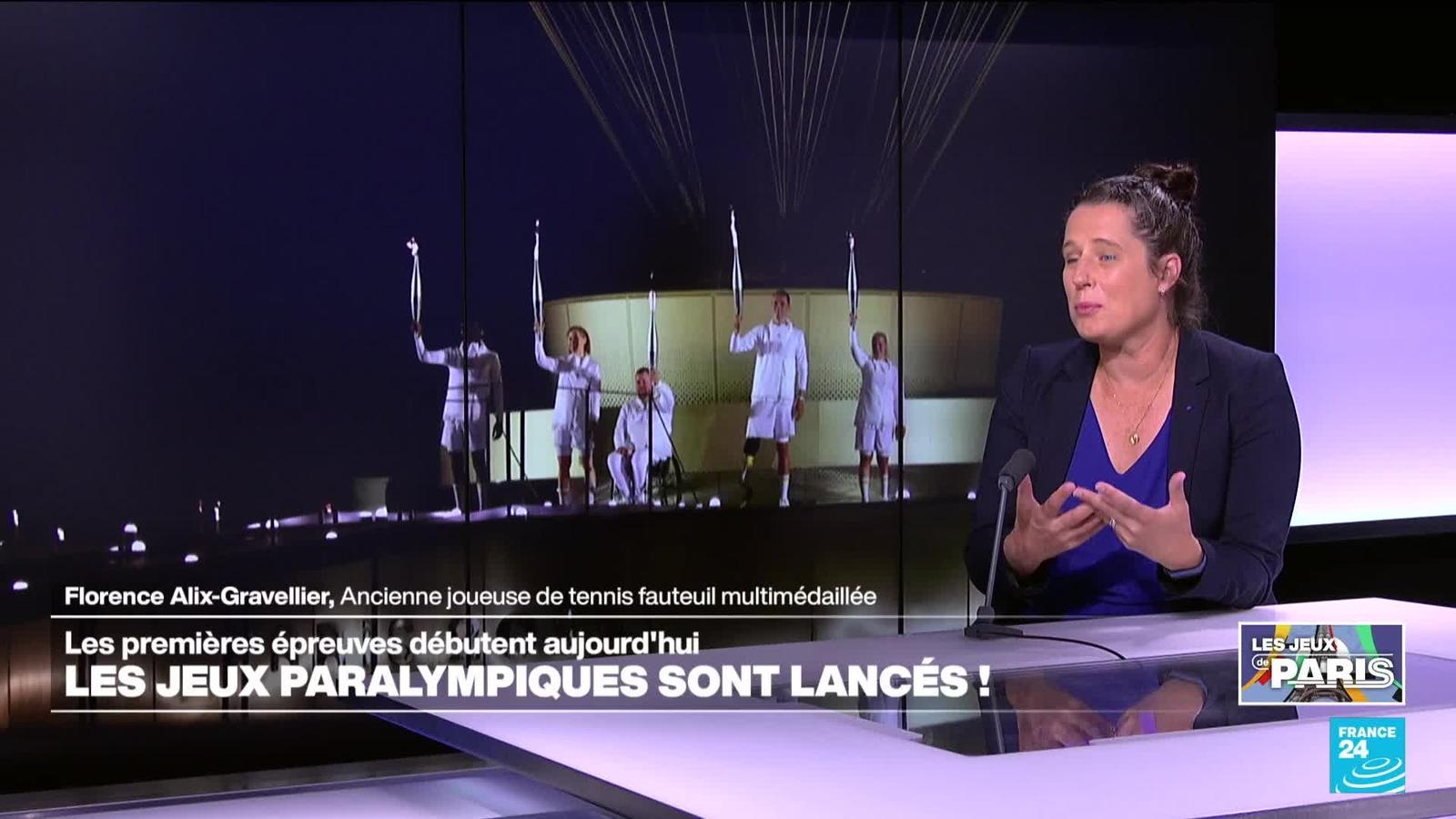 D'un show tout en musique et en danse, Paris a lancé devant un superbe panorama ses premiers Jeux paralympiques, en prolongeant l'esprit de fête des JO, et en sensibilisant à la cause du handicap. Tenu secret jusqu'au bout, le dernier porteur de la flamme s'est multiplié par cinq pour allumer la vasque paralympique dans le Jardin des Tuileries. Les porte-drapeaux Nantenin Keita et Alexis Hanquinquant ont été désignés au côté de trois autres grands para-sportifs français: le sprinteur Charles-Antoine Kouakou, la nageuse Elodie Lorandi et le pongiste Fabien Lamirault. Plus tôt, sur la place de la Concorde, le président Emmanuel Macron avait proclamé "ouverts" les Jeux paralympiques, les premiers sur le sol français, devant les athlètes qui prendront part aux compétitions jusqu'au 8 septembre. Décryptage avec Florence Alix-Gravellier, ancienne joueuse de tennis fauteuil et multi-médaillée.