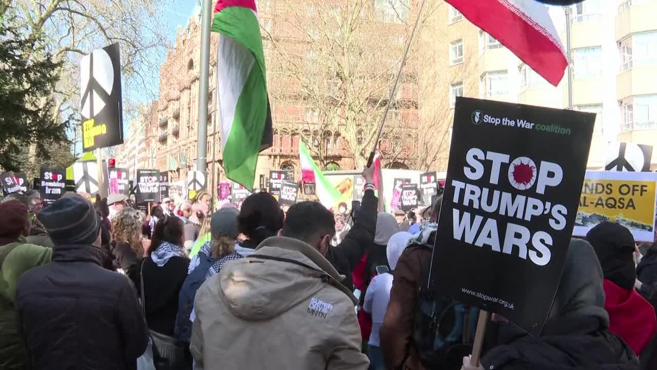 Des centaines de manifestants à Londres contre les frappes américano-israéliennes en Iran information fournie par AFP Video 21/03/2026 à 19:58