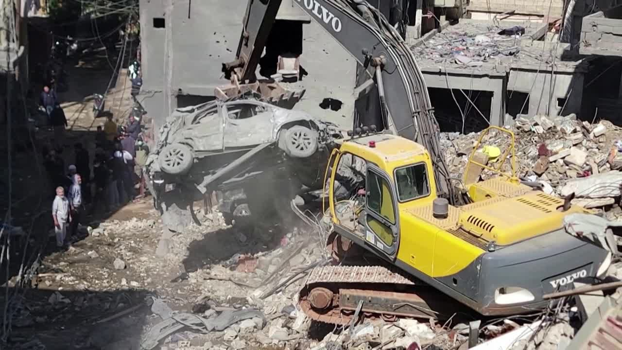 Une pelleteuse s'affairait dimanche à déblayer les décombres au lendemain d'une frappe israélienne qui a touché le quartier de Jnah à Beyrouth, près d'un grand hôpital public. Les frappes israéliennes sur le sud de Beyrouth et sa banlieue ont fait au moins quatre morts dimanche.