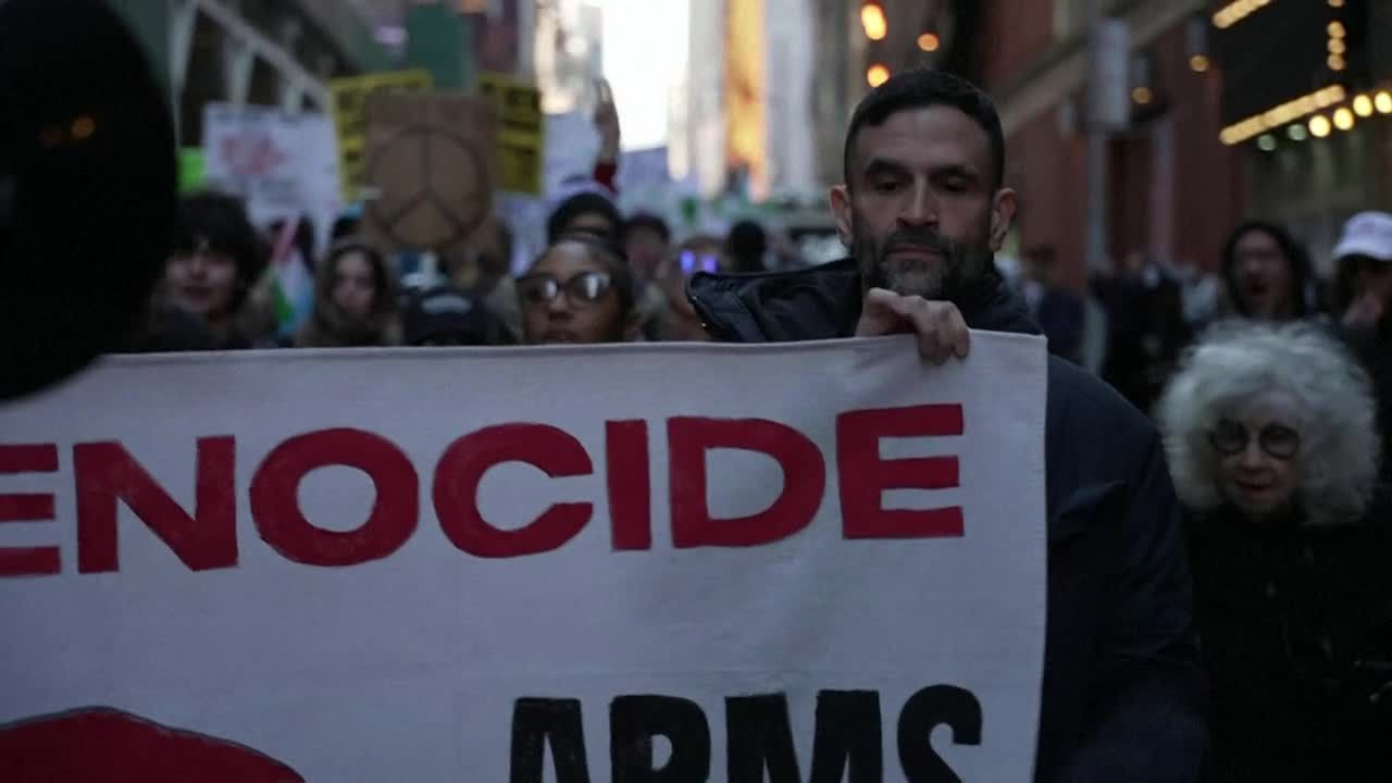Des manifestants à New York scandent "à bas l’occupation" pour dénoncer l’escalade en Iran information fournie par AFP Video 01/03/2026 à 09:17