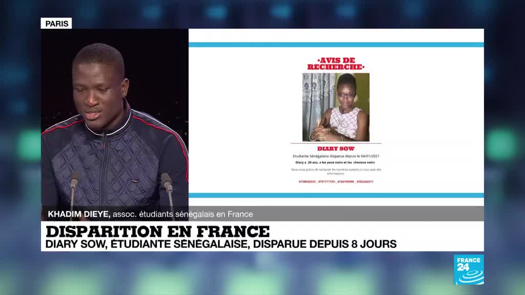 Huit jours après la "disparition" d'une étudiante sénégalaise à Paris, Diary Sow, toutes les pistes restent envisagées, y compris celle d'une fugue de cette jeune femme connue au Sénégal comme l'incarnation de l'excellence et de la réussite scolaires. Khadim Dieye, association des étudiants sénégalais de France, était l'invité de France 24 pour évoquer sa disparition.
