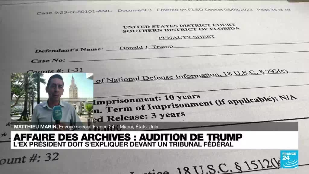 Donald Trump devant la justice à Miami : l'ex-président fait face à 37 chefs d'inculpation information fournie par France 24 13/06/2023 à 15:46