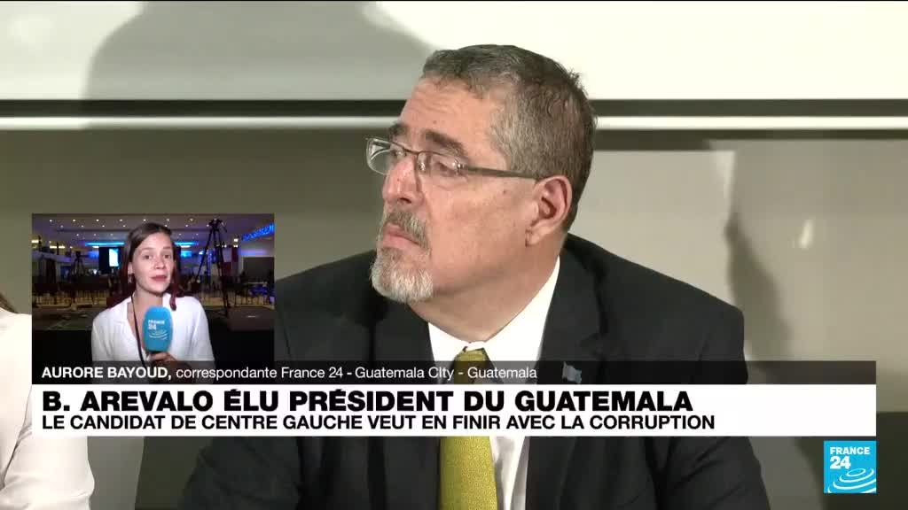 Le candidat surprise de l'élection présidentielle au Guatemala, Bernardo Arevalo, a remporté dimanche le second tour du scrutin avec la promesse d'en finir avec la corruption dans un pays miné par la pauvreté et la violence, explique Aurore Bayoud, correspondante France 24 à Guatemala City.