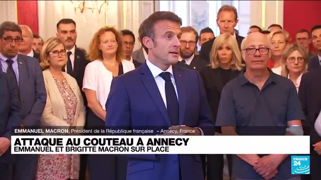 "S'attaquer à des enfants est l'acte le plus barbare qui soit", a déclaré vendredi le président Emmanuel Macron lors d'une visite à Annecy, au lendemain de l'attaque au couteau qui a fait six blessés, dont 4 enfants très jeunes. Emmanuel Macron, accompagné de son épouse Brigitte, a assuré qu'il voulait "apporter le soutien de la Nation toute entière à ces enfants et à leurs familles", et a dit sa "fierté" aux secouristes qui avaient pris en charge très rapidement les blessés.