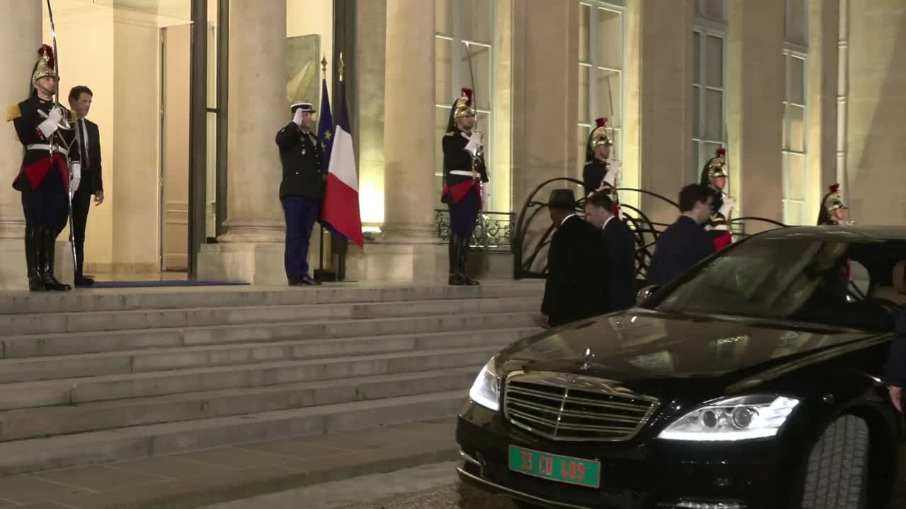 Le président français Emmanuel Macron reçoit au palais de l'Elysée pour un dîner de travail le président de la République de Côte d'Ivoire, Alassane Ouattara. IMAGES