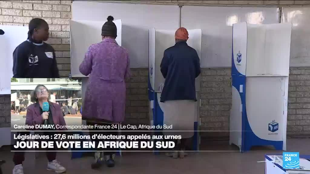 Le président sud-africain Cyril Ramaphosa, qui compte sur un second mandat à l'issue des législatives de mercredi, annoncées comme les plus disputées des trente dernières années, a assuré n'avoir "aucun doute" sur une nouvelle victoire de son parti de l'ANC, au pouvoir depuis la fin de l'apartheid. En raison d'une désillusion croissante à l'égard de l'ANC, liée au chômage endémique, à la pauvreté, la corruption, aux pénuries d'eau et d'électricité, le parti dominant doit pourtant se préparer à "un résultat potentiellement inférieur à 50%". Les précisions de Caroline Dumay, correspondante de France 24 en Afrique du Sud.