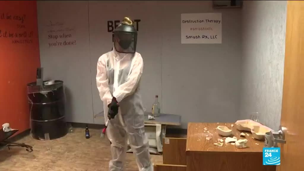 Pour faire face au stress et à l'isolement de la pandémie de Covid-19, les "rages rooms" proposent aux clients de se détendre en détruisant des objets. Pendant la session, un thérapeute observe, entraîne et conseille les participants pendant qu'ils démolissent une pièce remplie d'assiettes, meubles et bouteilles de verre.