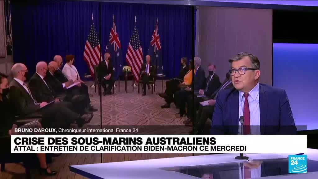 Emmanuel Macron aura "aujourd’hui même" un entretien de "clarification" avec le président américain Joe Biden concernant l'annnulation par l'Australie d'un contrat de sous-marins avec la France au profit de Washington, a déclaré mercredi le porte-parole du gouvernement Gabriel Attal. Bruno Daroux, Chroniqueur international pour FRANCE 24, explique.