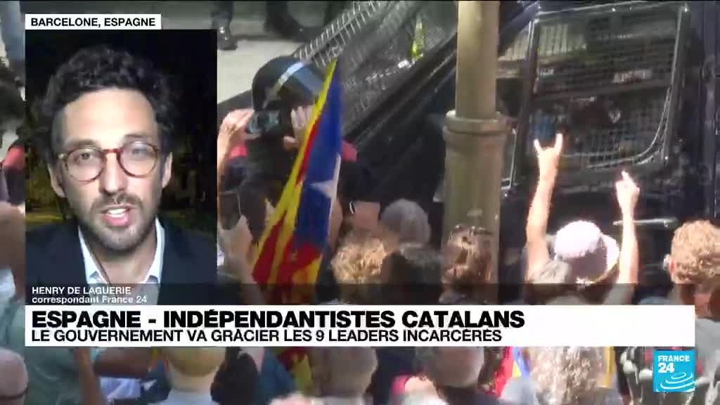 Au nom de la "réconciliation", le Premier ministre espagnol Pedro Sanchez a annoncé que son gouvernement allait gracier mardi les neuf indépendantistes catalans condamnés à la prison pour la tentative de sécession de 2017. Les précisons d'Henry de Laguerie, correspondant France 24 à Barcelone.