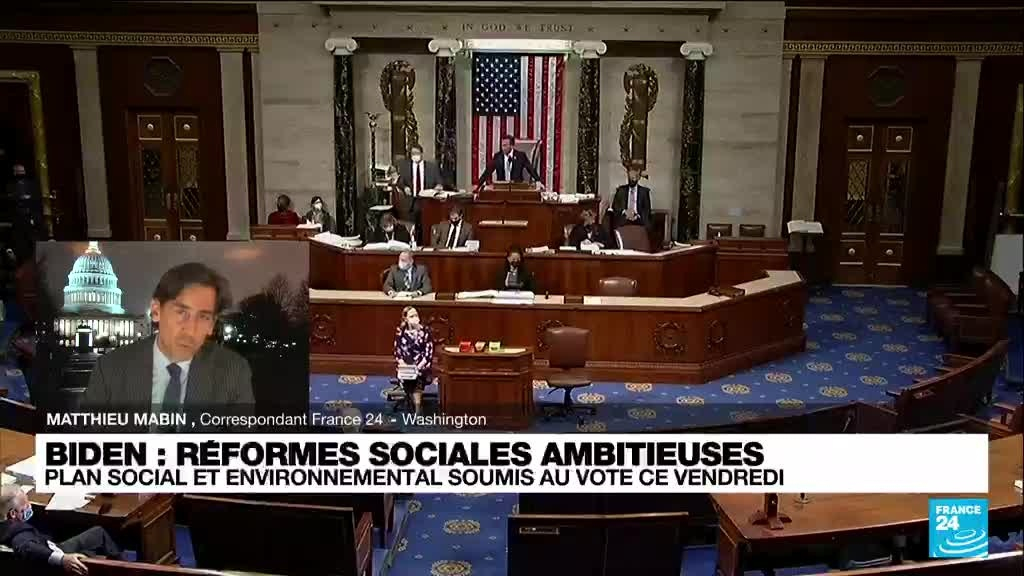 La Chambre basse du Congrès doit se prononcer ce vendredi 19 novembre sur un plan social et environnemental de 1.750 milliards de dollars. Il prévoit notamment l'école maternelle pour tous, des crédits d'impôts pour les foyers américains et des investissements conséquents pour réduire les émissions de gaz à effet de serre. Les précisions de notre correspondant à Washington, Matthieu Mabin.