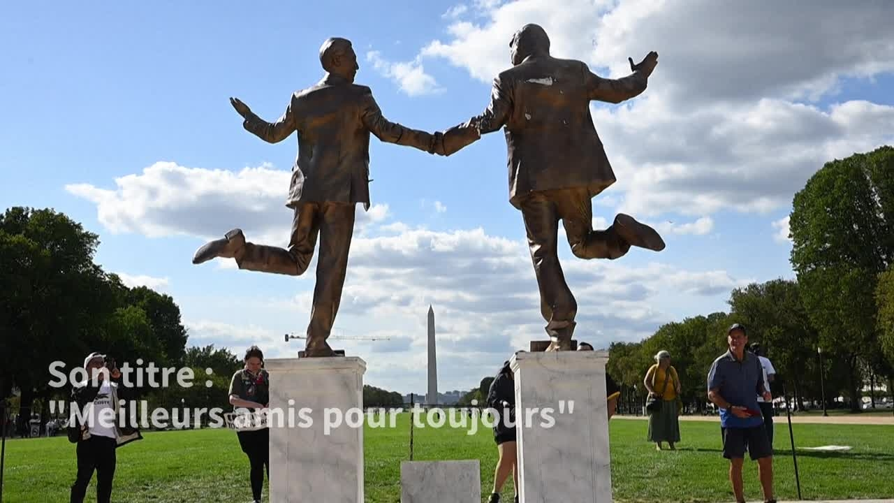 Une statue représentant le président américain Donald Trump et le délinquant sexuel Jeffrey Epstein se tenant la main a été réinstallée près du Capitole, à Washington.