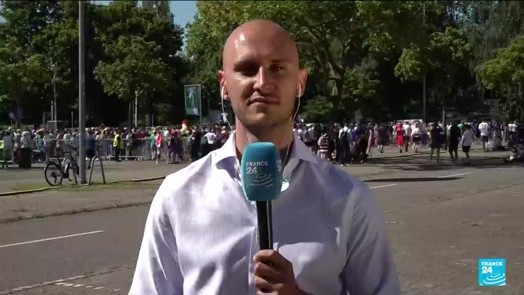 Le capitaine de l'équipe de France Kylian Mbappé, victime d'une fracture du nez, est de retour comme titulaire pour affronter la Pologne lors du dernier match du premier tour de l'Euro-2024 (groupe D), ce mardi à Dortmund. Les précisions de Jules Boiteau, envoyé spécial de France 24 en Allemagne.
