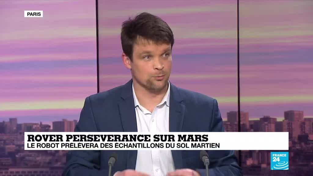 Au terme d'un voyage de sept mois, le robot Perseverance de la Nasa doit se poser jeudi sur Mars dans le cadre d'une mission destinée, entre autres, à rechercher des traces de vie ancienne sur la planète rouge. Les précisions de Sulvain Rousseau, journaliste France 24.