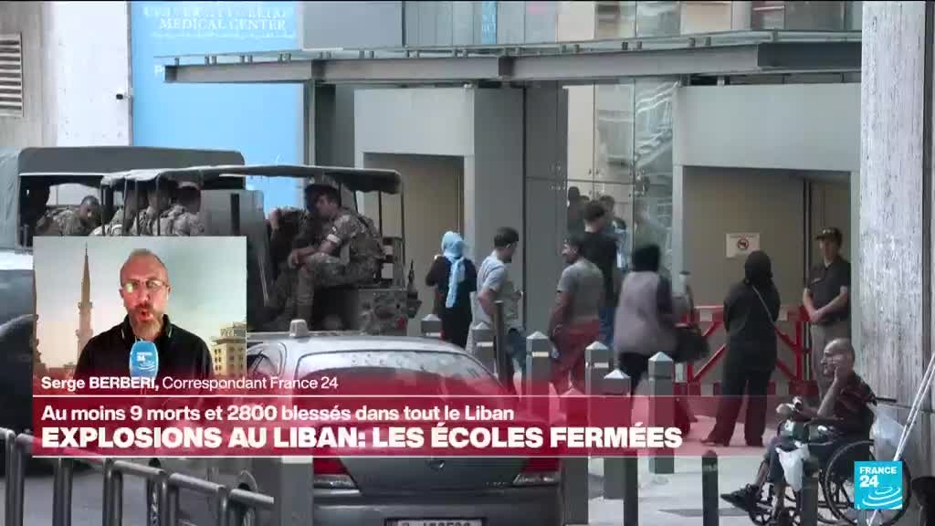 L'explosion simultanée à travers le Liban de bipeurs utilisés par le Hezbollah a fait neuf morts et près de 2 800 blessés, dont des centaines de membres du mouvement islamiste libanais, soutenu par l'Iran. Cette attaque sans précédent est attribuée à Israël. Au lendemain de ces explosions, les écoles sont fermées et les hôpitaux submergés de blessés. Les précisions de Serge Berberi, correspondant de France 24 au Liban.