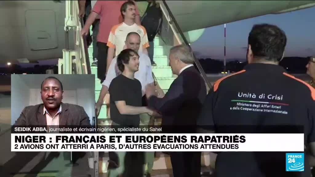 Une centaine de ressortissants étrangers résidant au Niger sont arrivés à Rome mercredi matin, évacués par l'Italie. Selon l'agence Ansa, 36 Italiens et 21 Américains font partie des ressortissants évacués. Un peu moins de 500 ressortissants italiens résident au Niger, dont la plupart sont des militaires. Du côté de la France, qui compte quelque 1.200 ressortissants enregistrés au Niger dont 600 ont souhaité partir, "deux avions se sont posés cette nuit. Le deuxième aux alentours de 04H00 locales (02H00 GMT). Deux autres avions sont mobilisés, "dont un s'est posé (à Niamey) et l'autre encore en vol", a indiqué en début de matinée l'état-major des armées françaises. Quel est le message derrière ces évacuations ? Éléments de réponse avec Seidik Abba, journaliste et écrivain nigérien, spécialiste du Sahel.