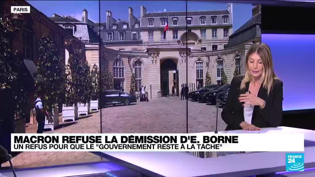 Après l'échec de la coalition gouvernementale a obtenir une majorité absolue à l'Assemblée nationale, la Première ministre Élisabeth Borne a remis sa démission à Emmanuel Macron, qui l'a aussitôt refusée, a annoncé l'Élysée ce mardi 21 juin. Alors que le chef de l'État rencontre les chefs de parti représentés à l'Assemblée pour tenter d'éviter le blocage parlementaire, la Première ministre a convoqué ses ministres à 14 h 30 à Matignon. Les précisions de Charlotte Urien-Tomaka.