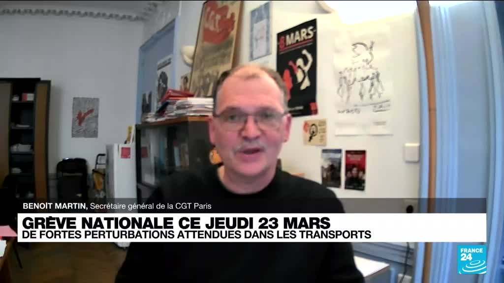 La contestation contre la réforme des retraites, adoptée grâce au 49.3, se poursuit. Jeudi 23 mars 2023, pour la neuvième journée de mobilisation à l’appel de l’intersyndicale, le trafic sera « très perturbé » dans les transports, à la SNCF comme à la RATP et dans l’aérien. Les précisions de Benoit Martin, secrétaire général de la CGT Paris.