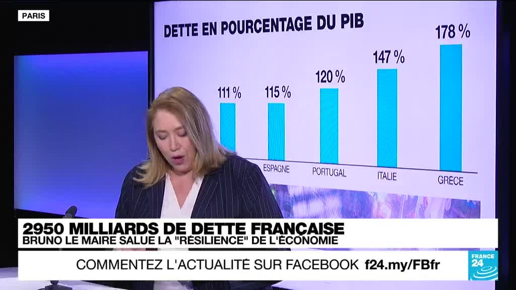 France : la dette publique à 2 950 milliards d'euros en 2022, ramenée à 111,6 % du PIB information fournie par France 24 28/03/2023 à 15:12