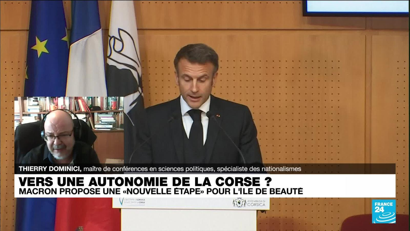 Emmanuel Macron a proposé jeudi à la Corse "une autonomie dans la République", en prévenant que ce "moment historique" ne se fera pas "sans" ou "contre" l'Etat français. Les explications de Thierry Dominici, maître de conférences en sciences politiques, spécialiste des nationalismes.