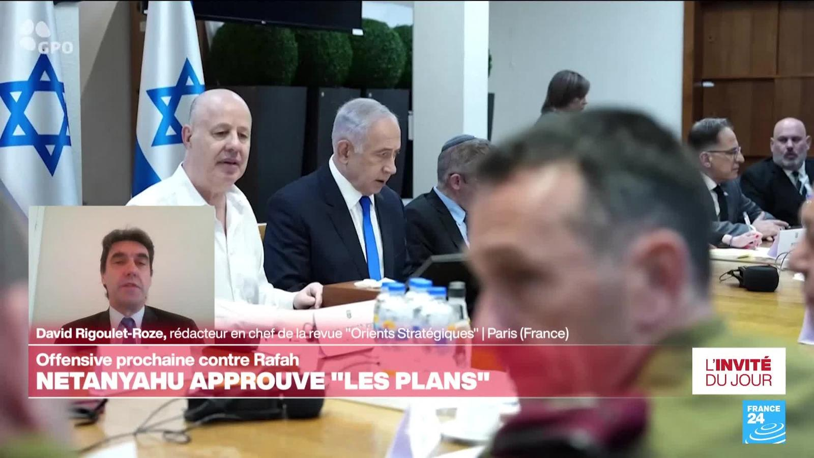 le Premier ministre israélien Benjamin Netanyahu a approuvé "les plans d'action" de l'armée en vue d'une offensive à Rafah, dans le sud de la bande de Gaza, selon un communiqué transmis vendredi 15 mars à la presse. Washington "souhaiterait avoir la possibilité de voir" ce plan, a réagi un porte-parole de la Maison Blanche. Le fossé entre le président américain et le Premier ministre israélien semble se creuser un peu plus chaque jour. Les explications de David Rigoulet-Roze, rédacteur en chef de la revue Orients Stratégiques, invité de France 24.