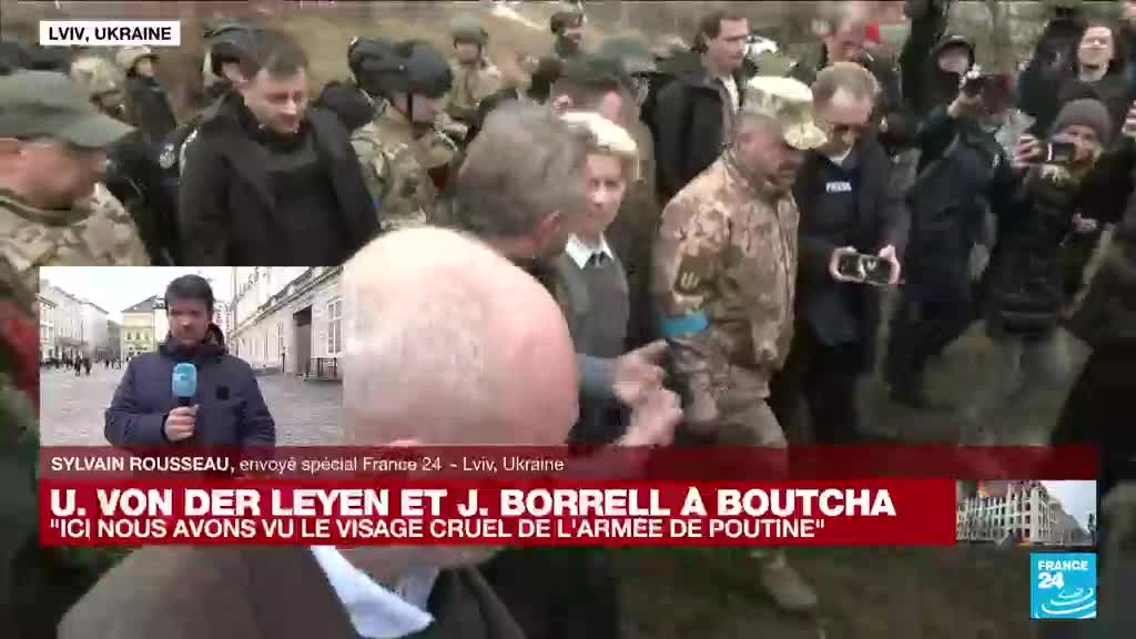 La visite de Ursula Von der Leyen et Josep Borrell en Ukraine ne satisfait pas entièrement la population ukrainienne. Si elle salue la venue très symbolique des deux chefs européens à Kiev et à Boutcha, elle dénonce surtout le financement indirect de cette guerre par l'Europe, comme l'explique Sylvain Rousseau, envoyé spécial de France 24 à Lviv;