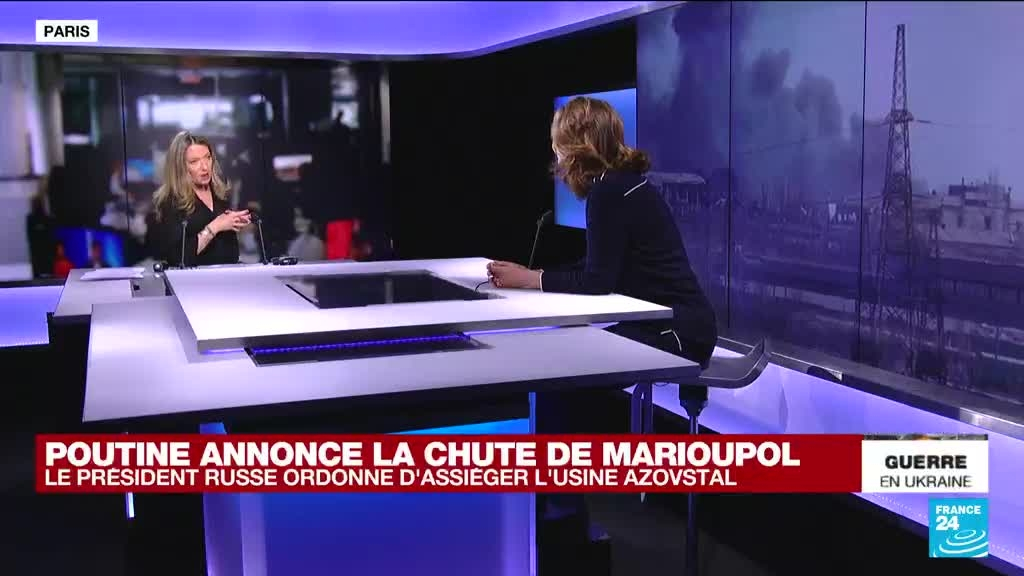 Le président russe a jugé jeudi 21 avril que ses forces avaient avec "succès" pris le contrôle de la ville ukrainienne de Marioupol et a ordonné d'assiéger les derniers combattants ukrainiens plutôt que de leur donner l'assaut. L'usine de Azovstal abrite toujours une poche de résistance ukrainienne, et l'Ukraine n'a pas encore communiqué sur la chute de la ville. Armelle Charrier, chroniqueuse sur les questions internationales à France 24, décrypte la stratégie de Vladimir Poutine à Marioupol.