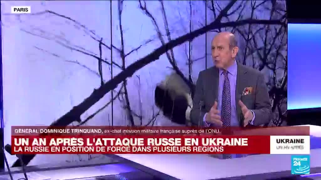 L'Ukraine entre vendredi dans sa deuxième année de guerre contre les forces russes. Ces dernières ont pénétré sur le territoire ukrainien au petit matin du 24 février 2022, lançant le pire conflit que l'Europe ait connu depuis la Deuxième Guerre mondiale. Les précisions du Général Dominique Trinquand, ex-chef mission militaire française auprès de l'ONU.