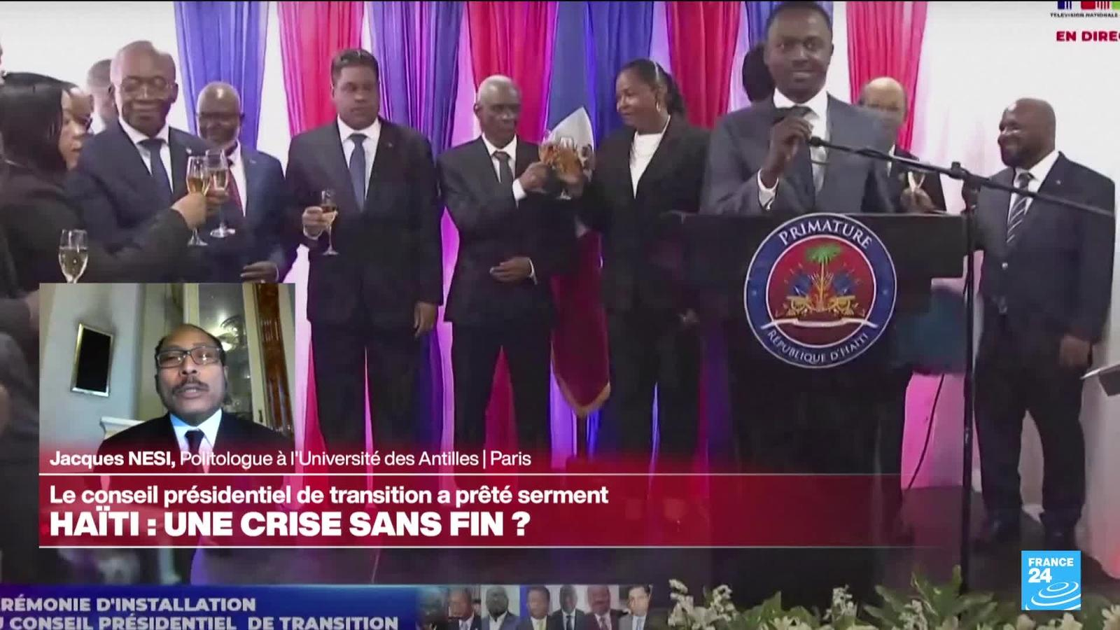 Le conseil présidentiel de transition en Haïti, né de longues et difficiles tractations, a prêté serment après la démission officielle du Premier ministre Ariel Henry, et doit maintenant s'atteler à la lourde tâche de gouverner un pays en proie à la violence des gangs. Selon Jacques Nesi, politologue à l'université des Antilles, professeur à l'Institution Sainte Marie, invité de FRANCE 24, "il faut pacifier cette société" alors que le nouveau gouvernement se prepare pour une épreuve "laborieuse" et déterminante.