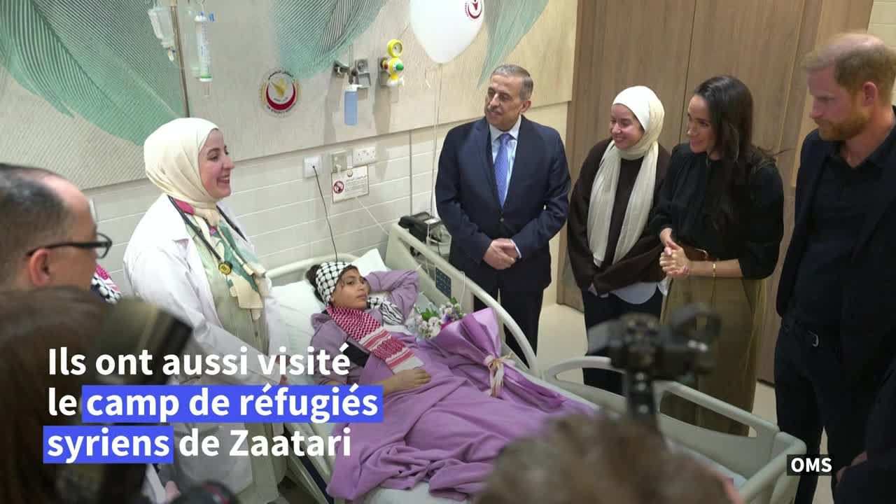 Invités en Jordanie par l'Organisation mondiale de la santé (OMS), le prince Harry et Meghan rencontrent dans un hôpital de la capitale Amman des enfants évacués pour raisons médicales de Gaza, territoire ravagé par deux ans de guerre.