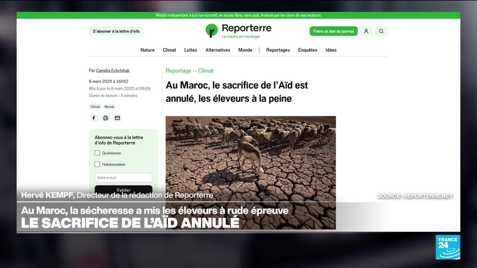 Cette semaine, France 24 propose un regard écologiste sur l'actualité internationale. Hervé Kempf, Directeur de la rédaction du magazine Reporterre. Il revient sur les appétits des grandes puissances pour les ressources du Groenland.