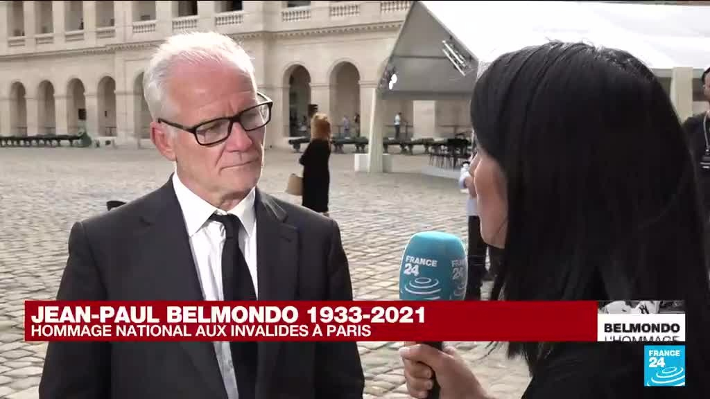 Emmanuel Macron a rendu jeudi un hommage national à Jean-Paul Belmondo, "héros aux mille visages" qui "épousa la France", lors d'une cérémonie empreinte d'émotion aux Invalides, en présence de la famille du comédien et de centaines d'anonymes venus saluer "L'as des as". Thierry Frémaux, délégué général du Festival de Cannes, raconte les souvenirs qu'il garde de Jean -Paul Belmondo.