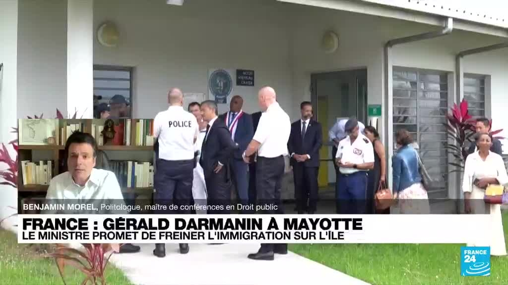 Le ministre de l'Intérieur, Gérald Darmanin, et son ministre délégué chargé des Outre-Mer Jean-François Carenco ont entamé, dimanche 21 août, une visite de trois jours à Mayotte avec comme priorité la lutte contre l’immigration clandestine. Le ministre veut durcir l'attribution de la nationalité française aux enfants nés sur l'île. Cette réforme "pose de grandes questions" pour Benjamin Morel, politologue."Dans quelle mesure peut-on différencier le droit sans rompre l'unité de la République ?" s'interroge-t'il. Il est l'invité de France 24.