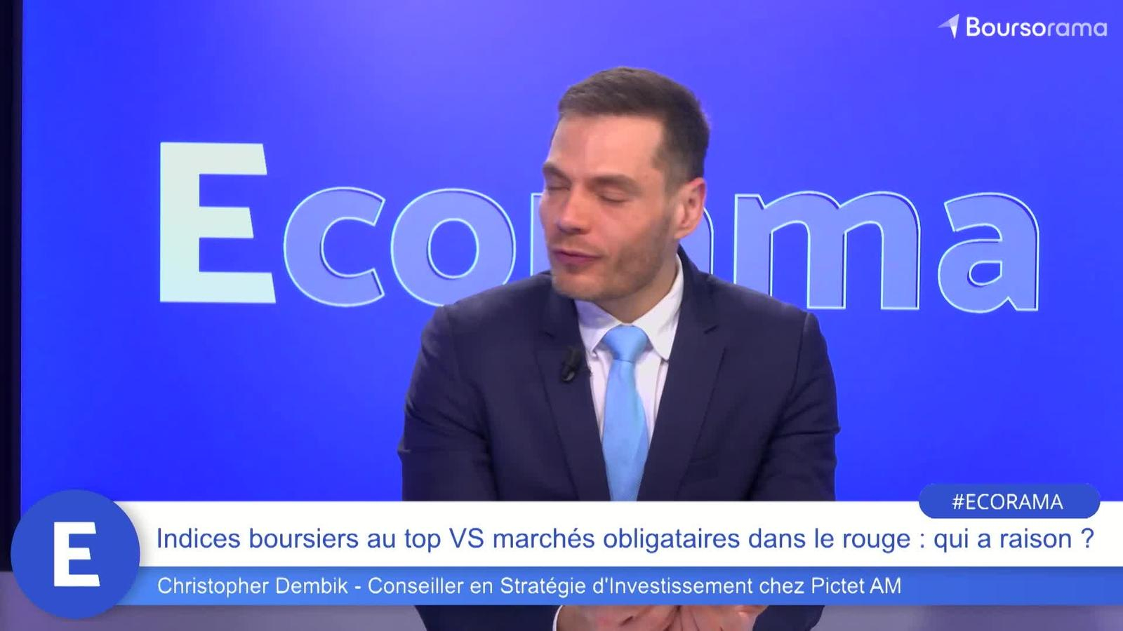 Pendant que les indices boursiers sont proches de leurs plus hauts historiques, les marchés obligataires ne sont pas à la fête. Comment expliquer cette distorsion entre ces deux classes d'actifs ? L'analyse de Christopher Dembik, conseiller en stratégie d'investissement chez Pictet AM. Ecorama du 27 février 2024, présenté par David Jacquot sur Boursorama.com