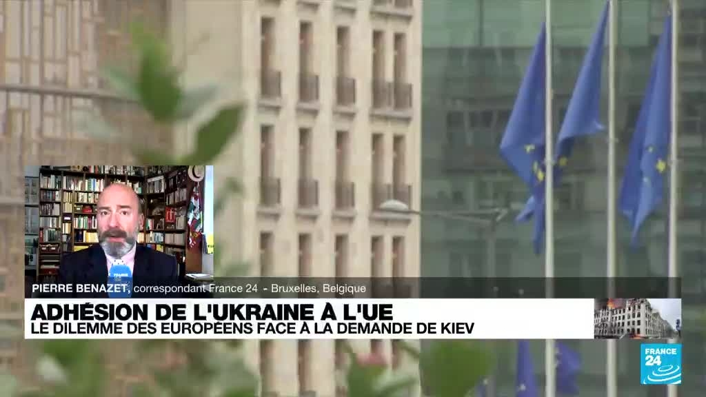La Commission européenne se prononce vendredi 18 juin sur l'octroi à l'Ukraine du statut de candidat à l'UE mais tout feu vert sera assorti de conditions et devra être validé à l'unanimité par les Vingt-Sept avant l'ouverture de longues négociations en vue de son adhésion. Toutes les explications avec Pierr Bénazet, correspondant à Bruxelles pour France 24.