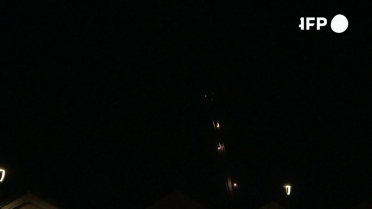 Images d'interceptions d'engins dans le ciel alors que les systèmes de défense israéliens opèrent à la frontière avec le Liban. IMAGES